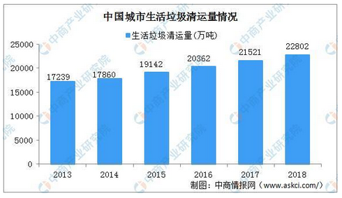 庞大的生活垃圾量为清运也带来增长。近年来,国家相关部门及各城市纷纷加大治理力度,加强对生活垃圾的清运力度。2018年全国城市生活垃圾清运量22802万吨,同比增长6%。